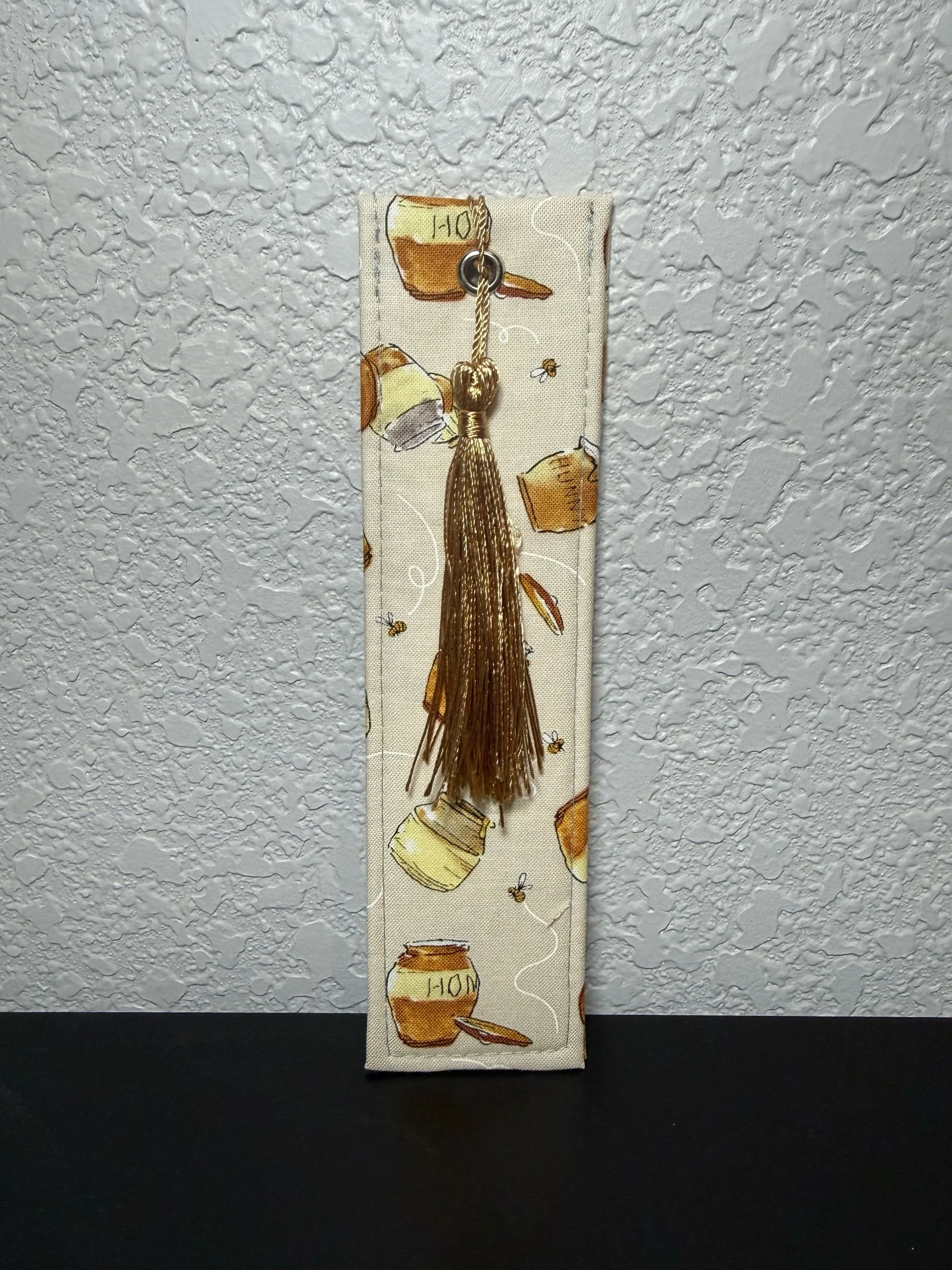 Bookmarks › Honey Pot Bookmark Image 1 of 1 Honey Pot Bookmark $8.00 Fabric bookmark sewn by Savannah. Honey pot pattern with a complimentary gold tassel. Purchase Added! Fabric bookmark sewn by Savannah. Honey pot pattern with a complimentary gold tassel. Reviews Reviewer Name Review Date Star Rating Description Posted on Etsy Product Show More